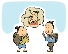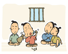 秋(あき)の頃(ごろ)、ある家(いえ)の囲炉裏(いろり)で栗(くり)の実(み)を焼(や)いていました。表(おもて)の道(みち)から、あさよむのやって来(く)る姿(すがた)が見(み)えました。「あさよむが来(き)たど。食(く)われんように、隠(かく)しとこうや。」家人(かじん)達(たち)は灰(はい)をかけ、焼栗(やきぐり)を隠(かく)してしまった。何(なに)くわぬ顔(かお)で待(ま)っていると、あさよむは家(いえ)の中(なか)に入(はい)って来(き)ました。